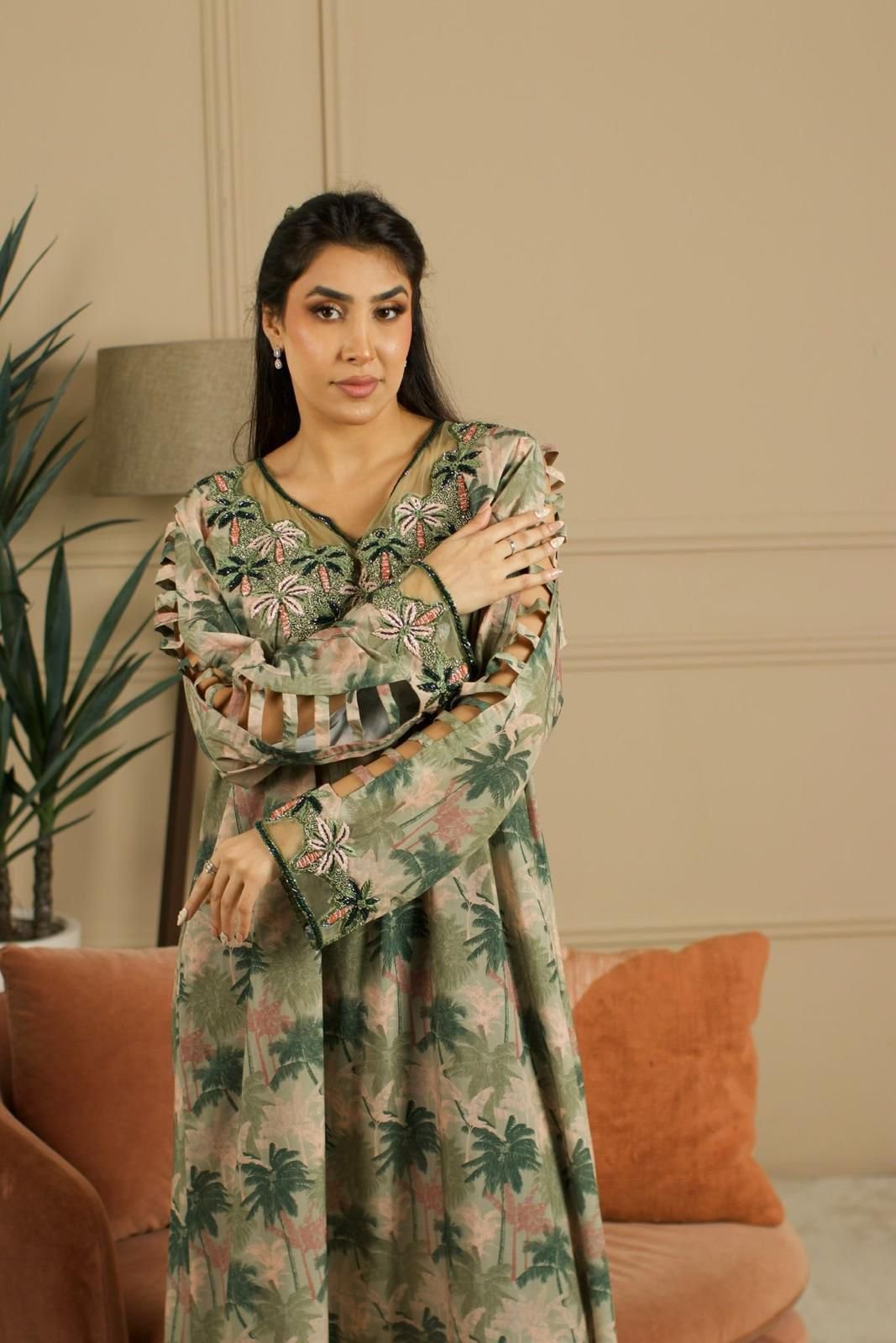 جلابية سهرة فاخرة بتصميم تراثي راقٍ