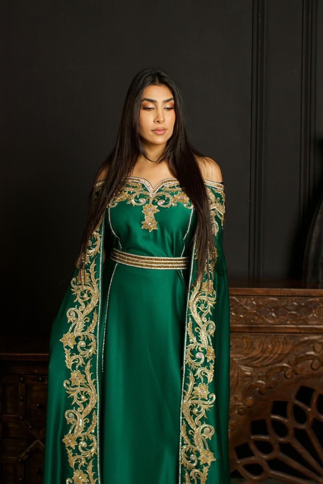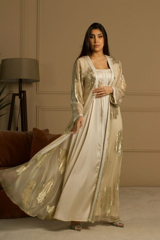 جلابية سهرة ملكية بالتطريز الذهبي