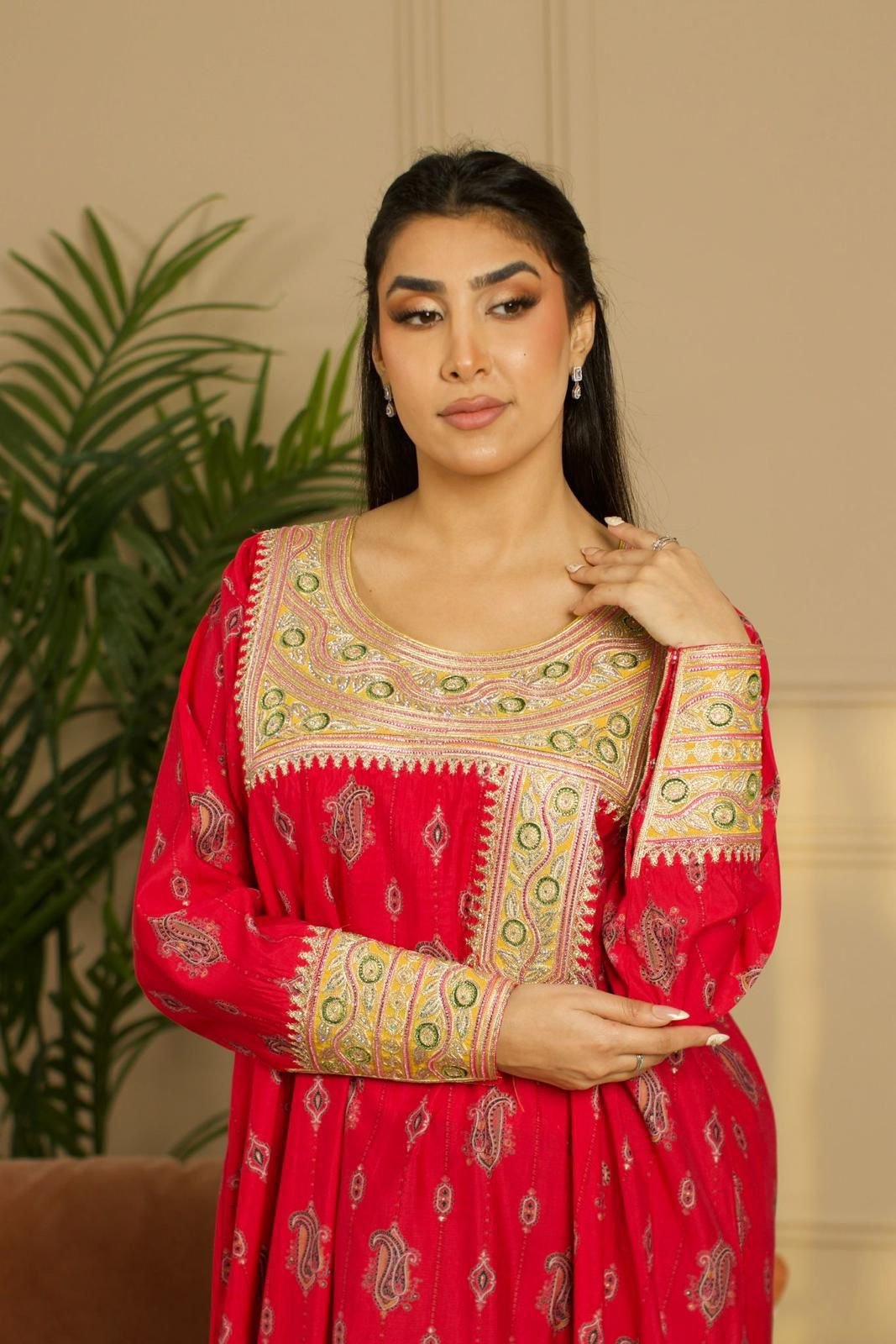 فستان أطفال أحمر فاخر بتطريز ذهبي