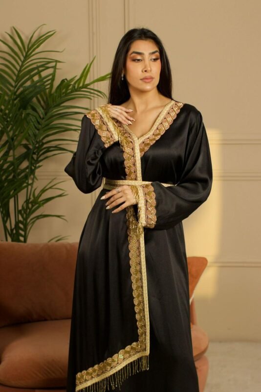 جلابية سهرة أنيقة بحواف ذهبية