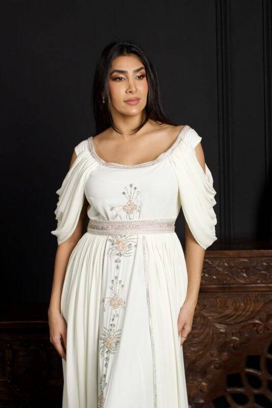 جلابية سهرة أوف وايت بتطريز ناعم