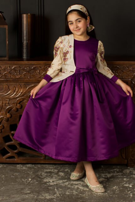 فستان أطفال موف ملكي بتفاصيل مطرزة
